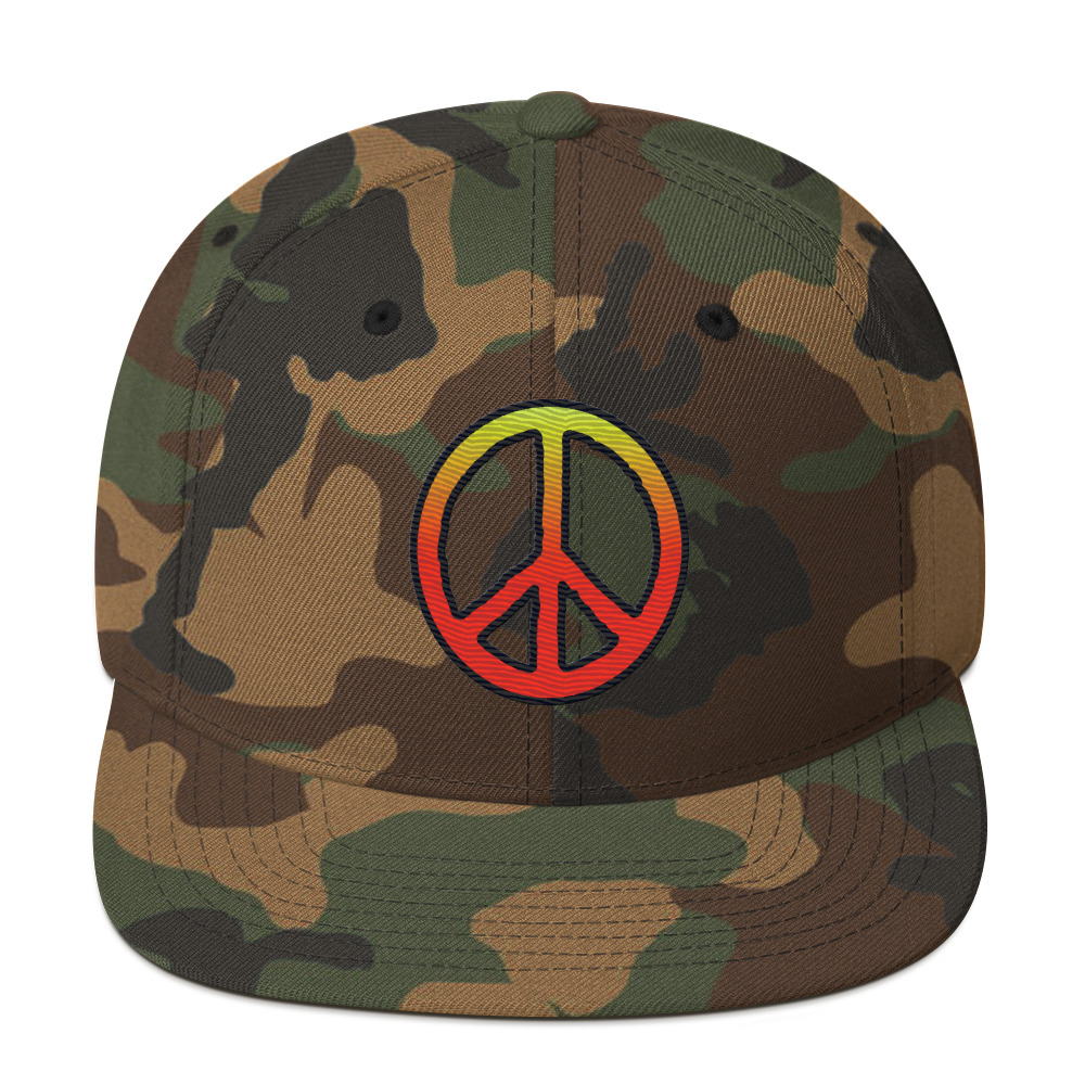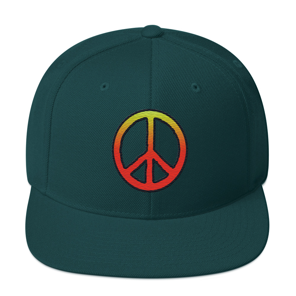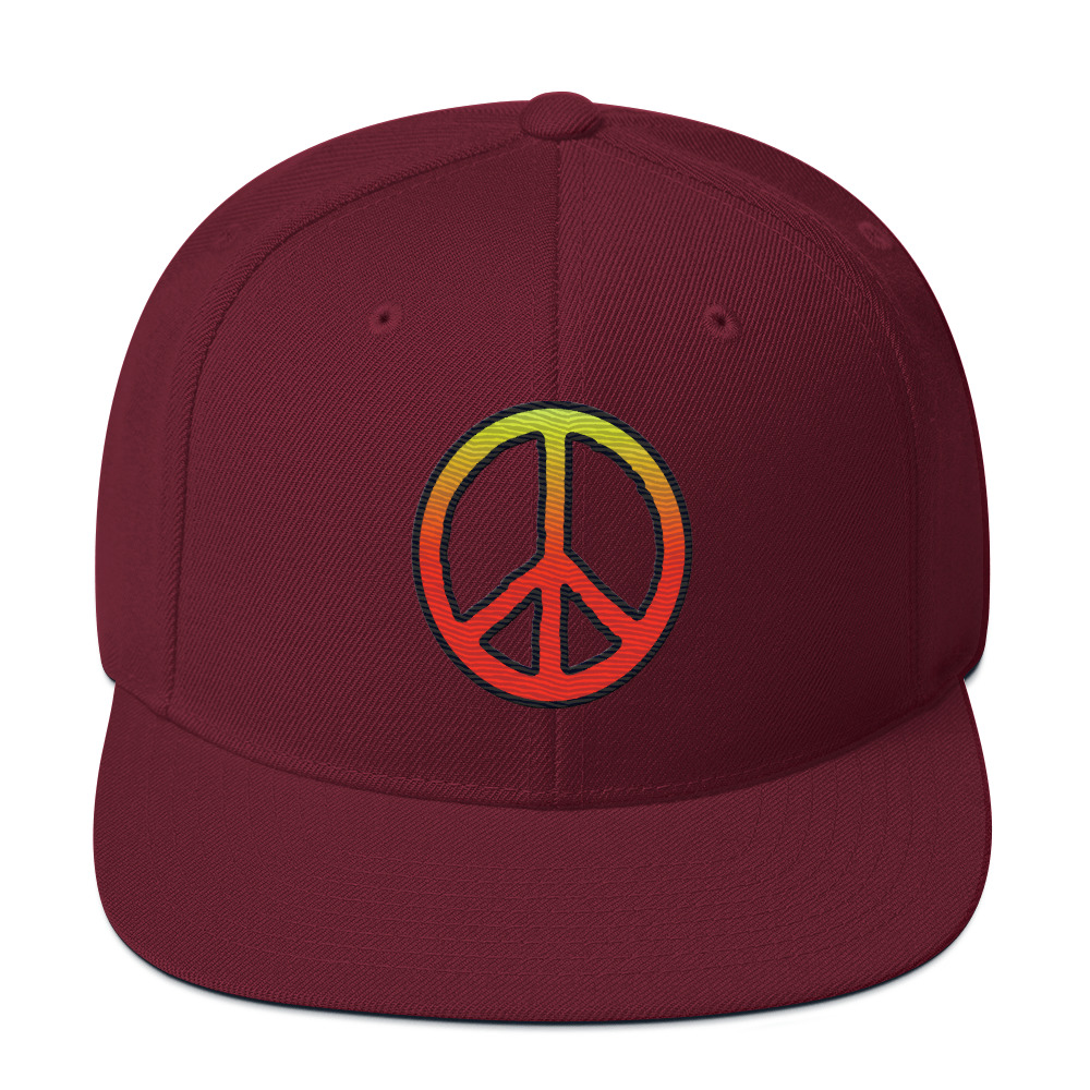 Stay cool. Keep the peace. Let your vibe speak louder than words with this laid-back snapback from Creative Native. Featuring a mellow peace sign embroidered in a warm gradient that fades from golden yellow to deep red, it’s a nod to California sunsets and calm state of mind.