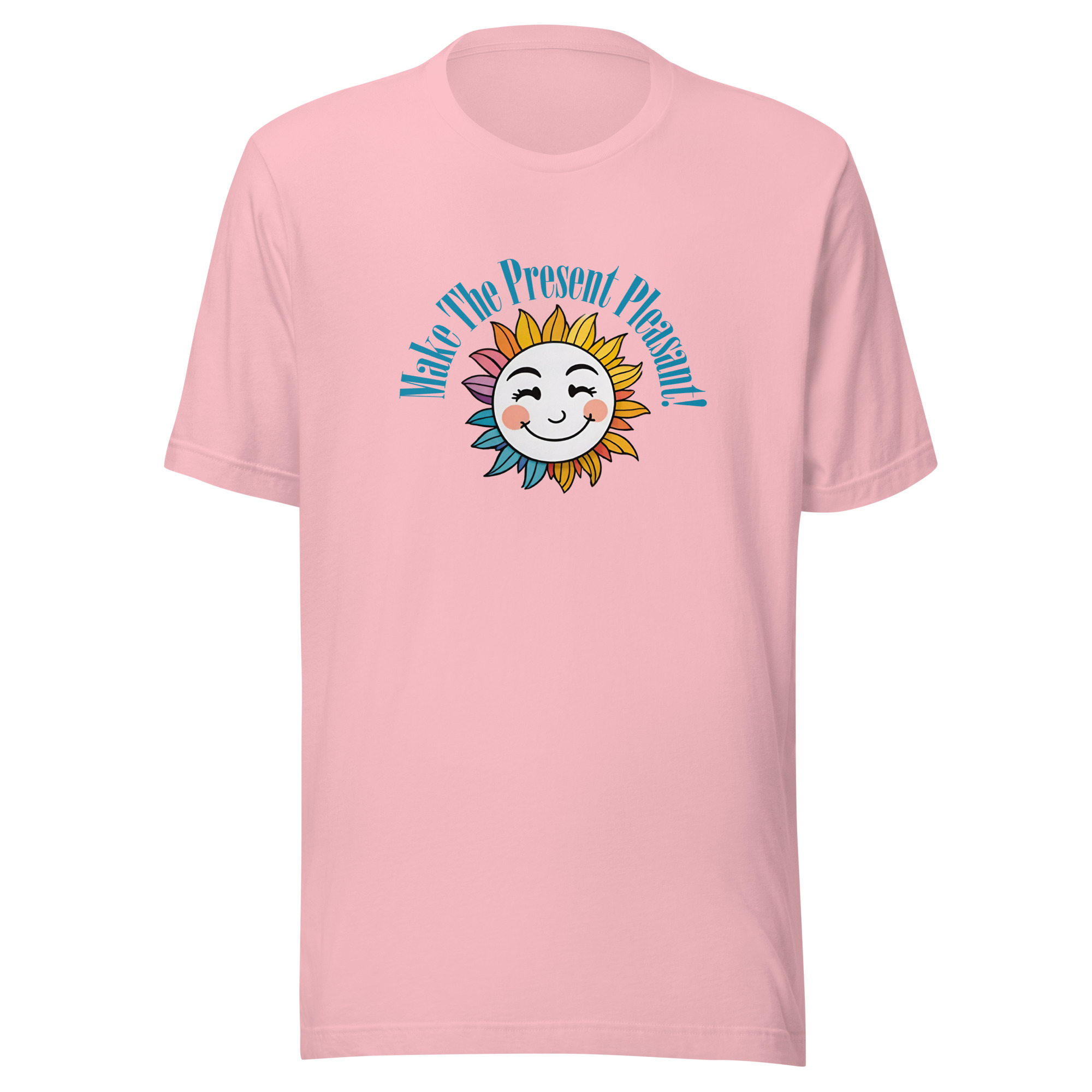 Embrace positivity and warmth with our Make the Present Pleasant T-shirt. This uplifting design features a charming, smiling sun paired with a gentle reminder to live in the moment and find joy in the present. Simple yet powerful, this message encourages mindfulness, gratitude, and radiating good vibes wherever you go.